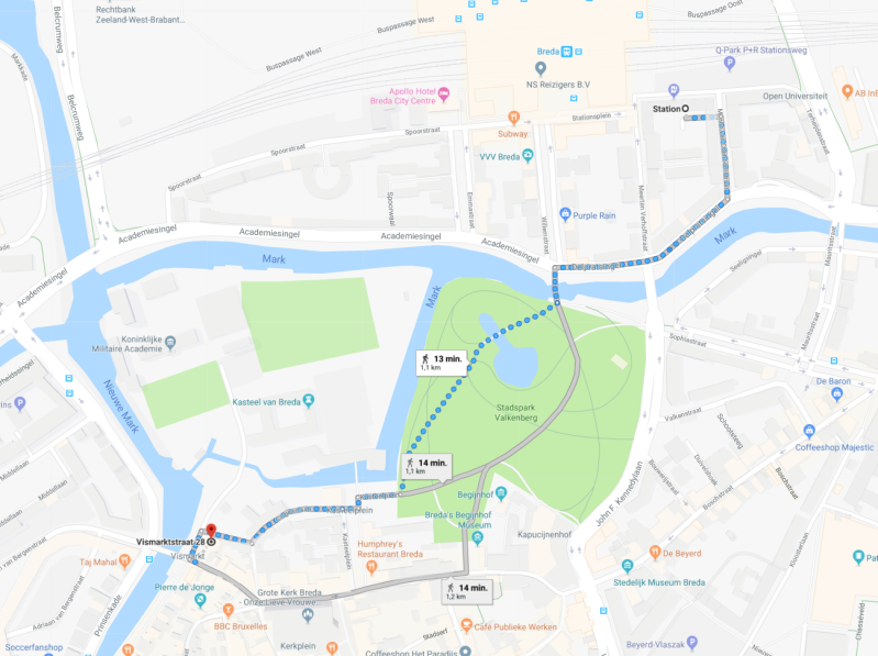 Route vanaf station Breda:
